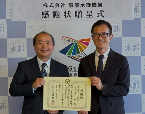 お知らせ 徳島市の企業版ふるさと納税で市長から感謝状 2025.12.05 当機構は、徳島県徳島市の企業版ふるさと納税を実施しました。これを受けて、11月28日徳島市役所において感謝状贈呈式が執り行われ、徳島市長 遠藤 彰良様より感謝状が贈呈されました。